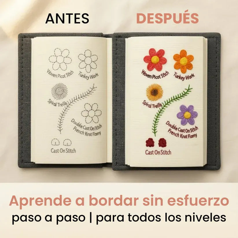 Con más de 60 diseños únicos, además de una aguja, tijeras y enhebrador, este libro de bordado incluye todo lo que necesitas para comenzar a crear de inmediato.
